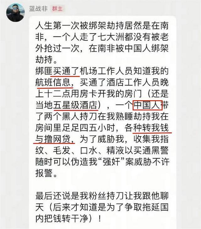 12月8日深夜,坐拥数万万粉丝的旅行博从蓝和非,于社交发布一篇让人的长文。文中,他细致地讲述了本人正在南非劫持的惊险履历。的是,他走遍七大洲从未被外国人掳掠过,最终却正在南非栽正在了本人手里。